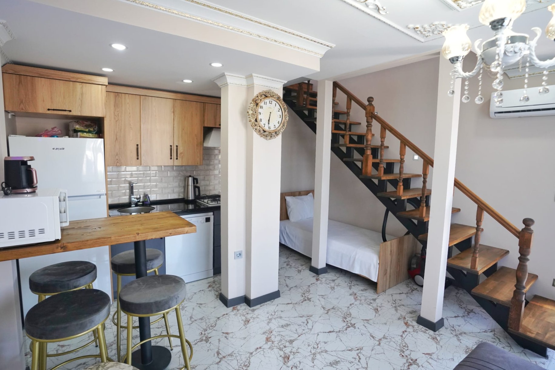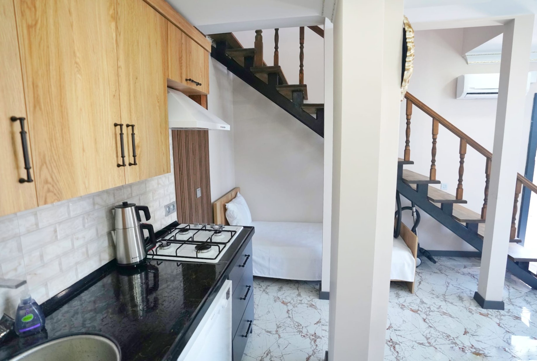 Her odada ve salonda inverter klima sistemi ile yaz-kış konforlu konaklama imkanı.